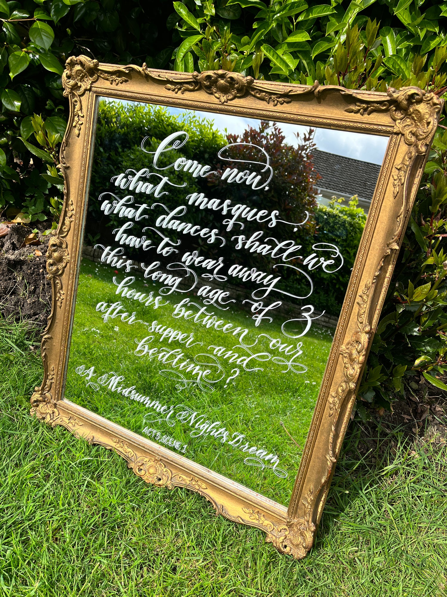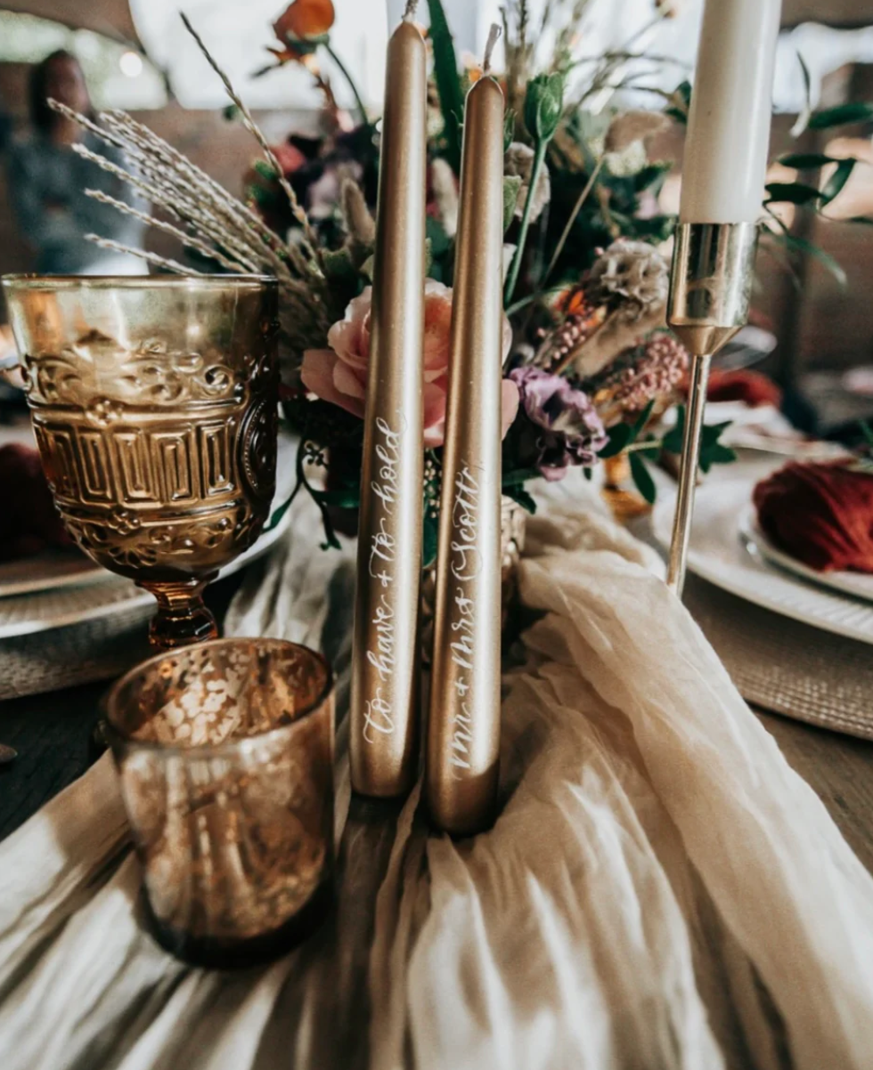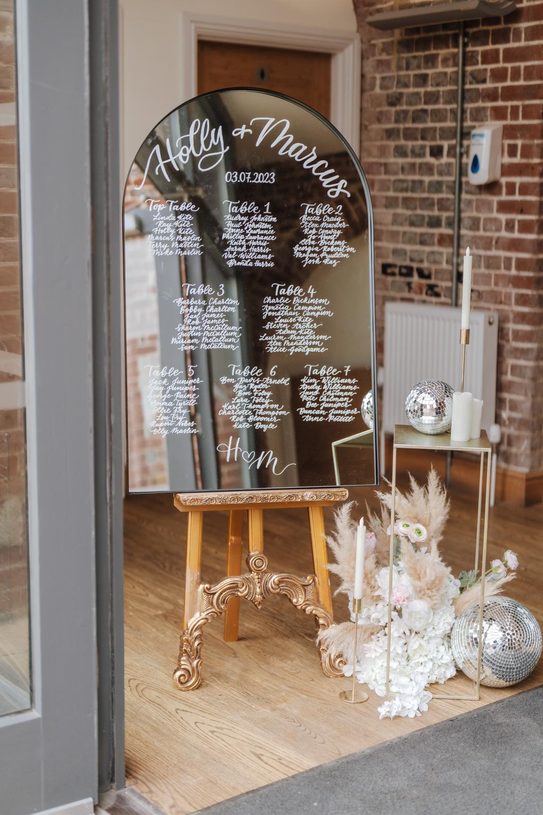 Perfume engraving, mirror table plans and welcome signs, place cards, customised candles, personalised wine and champagne bottles, hot foiling etc.