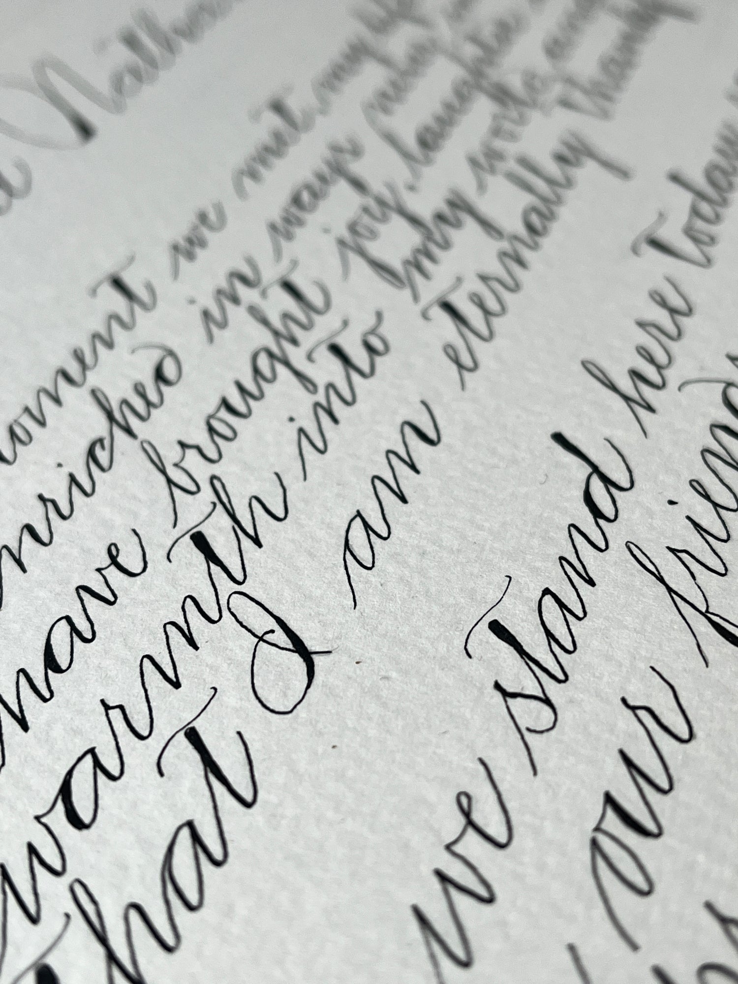 I specialise in modern calligraphy and spencerian calligraphy styles.