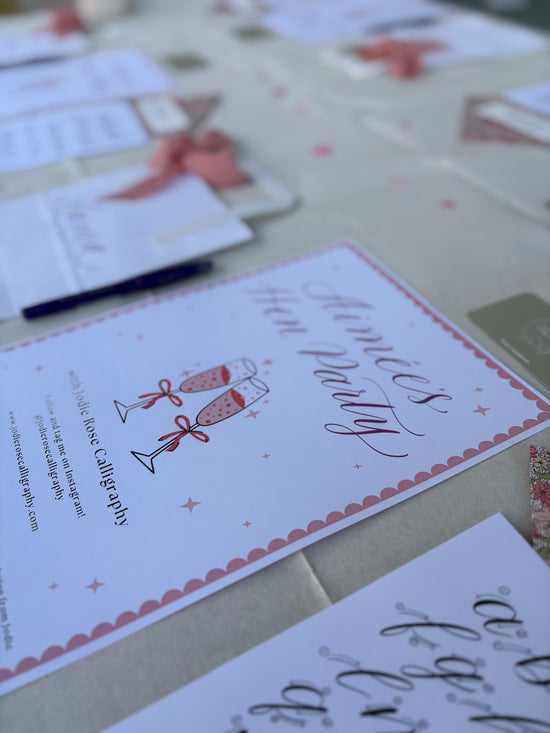 Celebrate in style with a modern calligraphy workshop designed especially for hen parties. This elegant, creative experience invites your group to slow down, learn the art of beautiful lettering, and enjoy a memorable moment together while creating something truly special.