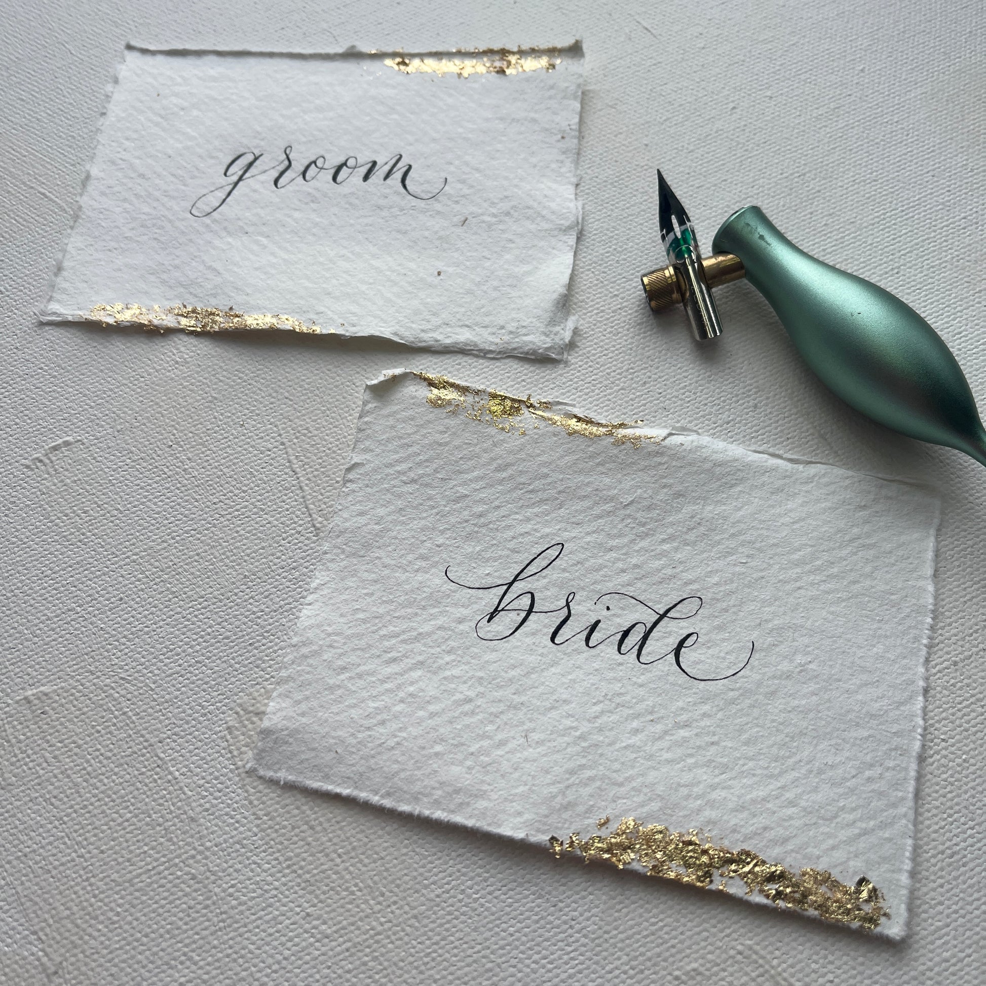Cotton paper place cards with handwritten calligraphy